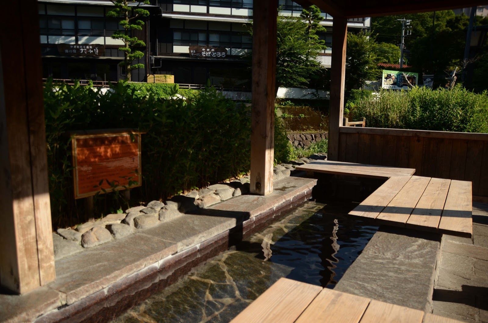 在炎熱的天氣底下我還是脫了鞋,嘗試將雙腳浸進河原湯足湯之內,但泉水實在太熱,連10秒我也受不了。